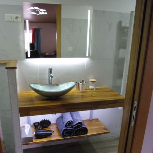 * Salle de bain avec douche à l'italienne.